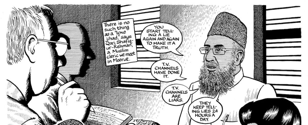 Sacco acaba de lançar, nos EUA, um novo livro-reportagem: “The Once and Future Riot” (em tradução livre, “A revolta passada de futura”). Trata-se de um olhar múltiplo sobre os conflitos entre muçulmanos e hindus na Índia, mas a partir de um recorte específico: o ano de 2013, quando houve um massacre local – mas a respeito do qual os dois lados divergem ao narrar como foi.