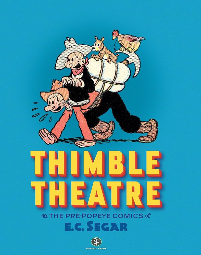 “Mais de uma década antes de criar o marinheiro cartunesco mais famoso do mundo, Elzie Crisler Segar começou sua carreira com quadrinhos relacionados a cinema. Ele ilustrava desenhos animados para slides de cinemas mudos, a HQ de Charlie Chaplin e uma história diária sobre cinema e entretenimento. Então, em 1919, ele escreveu sua própria criação de ‘tela pequena’ para os jornais, ‘Thimble Theatre’, onde Popeye nasceria uma década depois. Este volume abrangente apresenta exemplos de todas as primeiras ilustrações e histórias em quadrinhos de E.C. Segar, com mais de 100 páginas dominicais pré-Popeye Thimble Theatre, incluindo a série completa da famosa saga do deserto do Oeste, uma série que rivaliza com seu trabalho posterior em termos de arte, narrativa e humor excelentes.