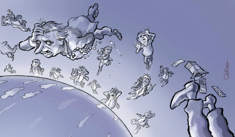 Este fato tão importante foi interpretado por dezenas de chargistas brasileiros. Separei aqui quatro exemplos. O que abre este texto é um trabalho de Quinho Ravelli.