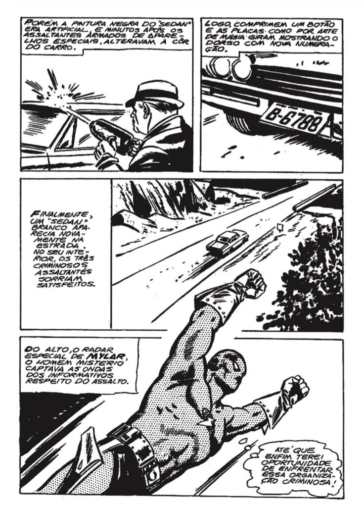 “Em maio de 1967, a editora paulista Taika lançava a primeira edição de Mylar, criação do artista ítalo-brasileiro Eugenio Colonnese, para aproveitar o momento de popularidade com o gênero super-herói, renovado pela chegada dos personagens Marvel à televisão brasileira.
