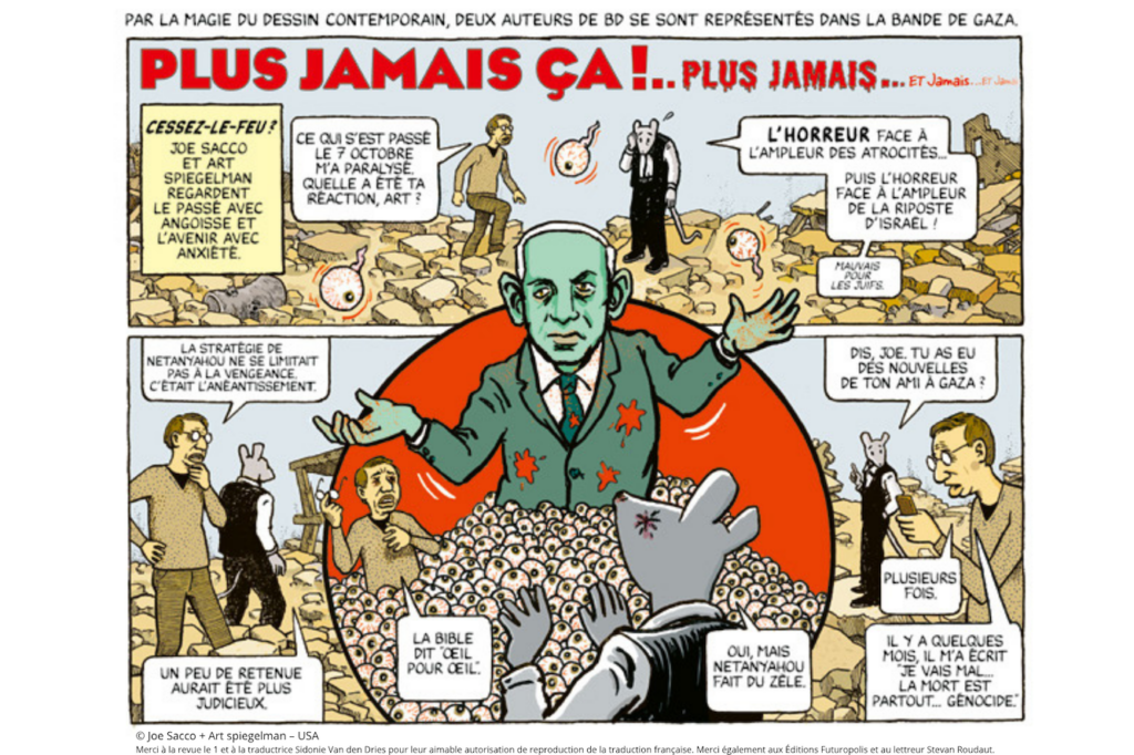 Uma coletânea lançada em janeiro reúne 126 artistas em uma obra cujo dinheiro arrecadado será destinado aos jornalistas palestinos e suas familias. Trata-se de “100 dessins pour Gaza” (“100 desenhos para Gaza”, em tradução livre).