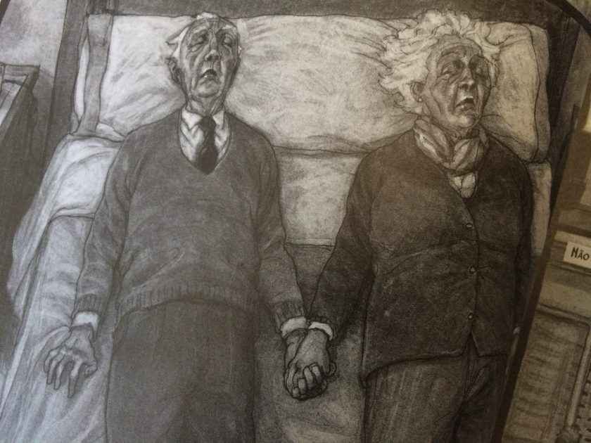 Veja a capa acima: dois idosos caminham diante do olhar de um par de animais (hienas?). Os humanos parecem incomodados. Os animais observam. Há uma pista no título: “Presas Fáceis“. Mas não se engane: os vilões não são animais, mas humanos.