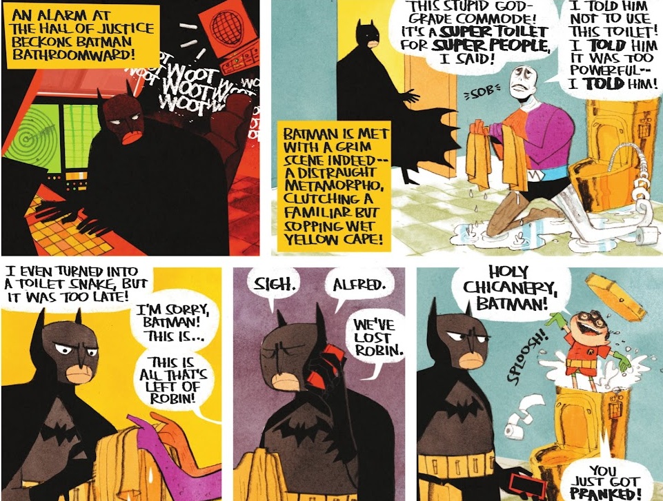Enfim, estou relembrando tudo isso para dizer que a MAD aproveitou este mês de abril para praticar um pouco de “fogo amigo saudável”. Na semana passada, dia 1º (“Dia da Mentira” aqui no Brasil, “Dia dos Tolos” nos EUA) lançou uma edição especial com título autoxplicativo: “MAD About DC“, em que ela tira sarro da própria DC Comics.